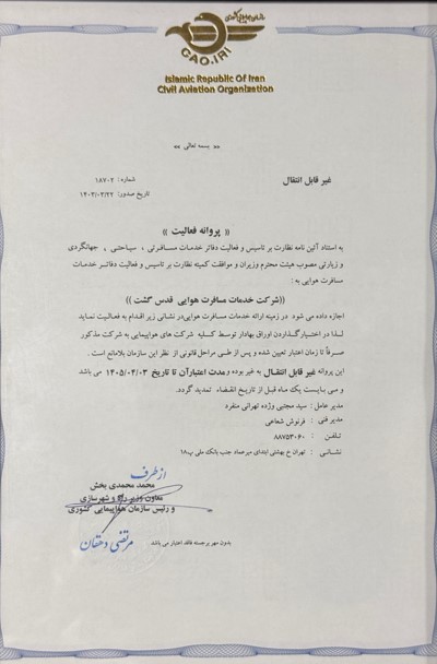 قدس گشت نهاد 45 سال خدمت ، نماد 45 سال تجربه